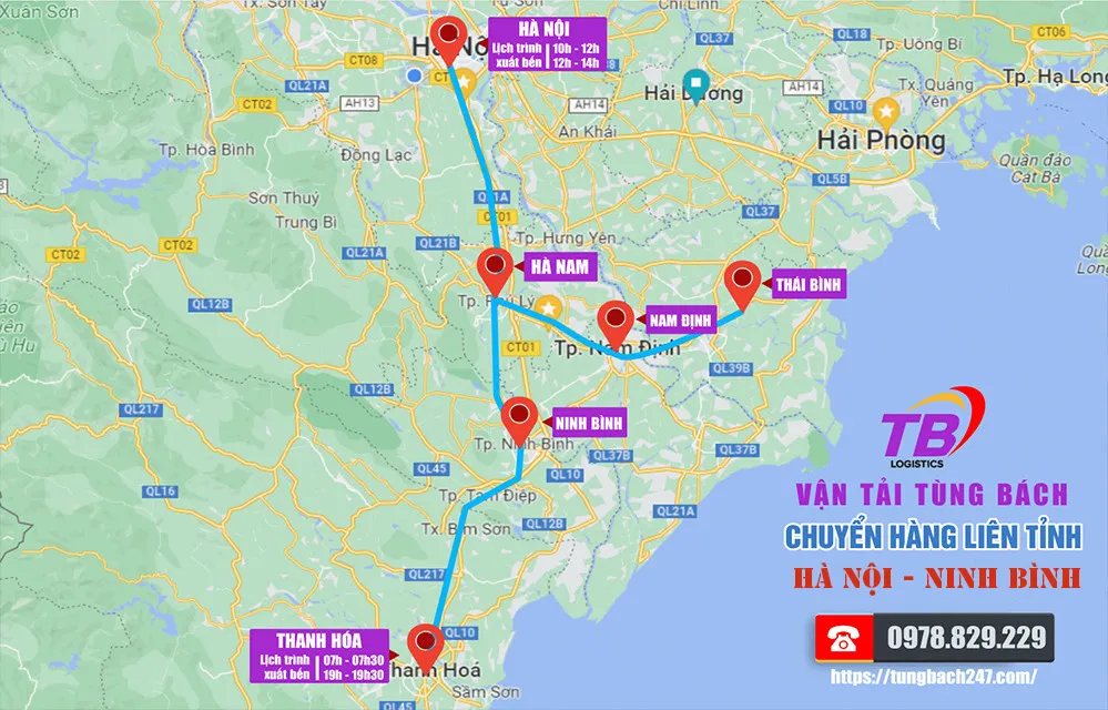 Vận tải Tùng Bách tự hào là đơn vị vận chuyển liên tỉnh uy tín tuyến Hà Nội – Ninh Bình với đội ngũ nhân viên chuyên nghiệp cùng mạng lưới kho bãi và hệ thống xe phủ khắp địa bàn Hà Nội, Ninh Bình.