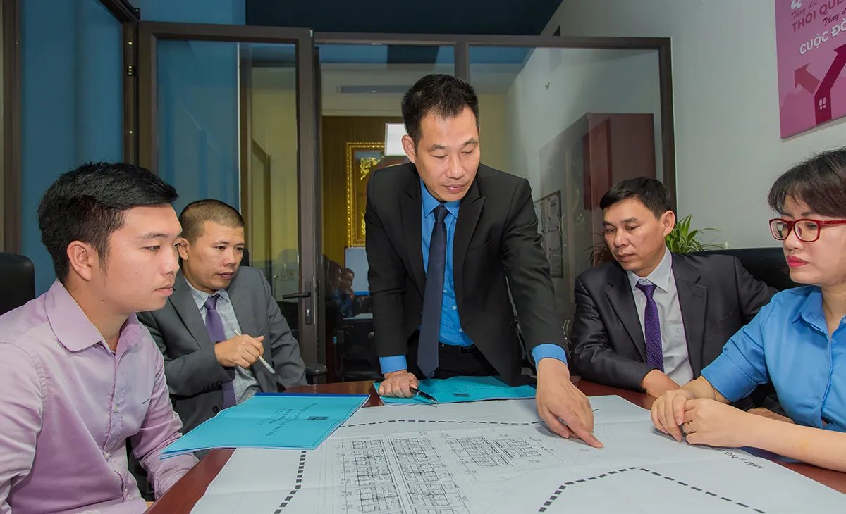 Mr Nguyen Van Quang, C.E.O of Viet Orient Hospitality is guiding the team about new set up hotel project