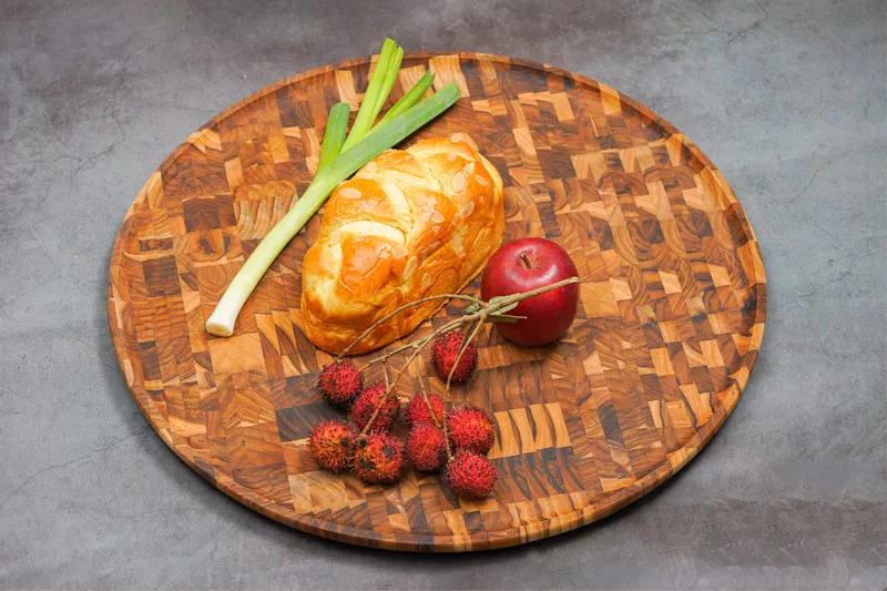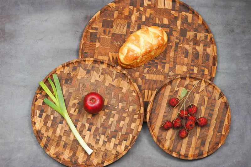 Ưu điểm của khay gỗ Teak ghép đầu cây hình tròn 50x2,5 cm