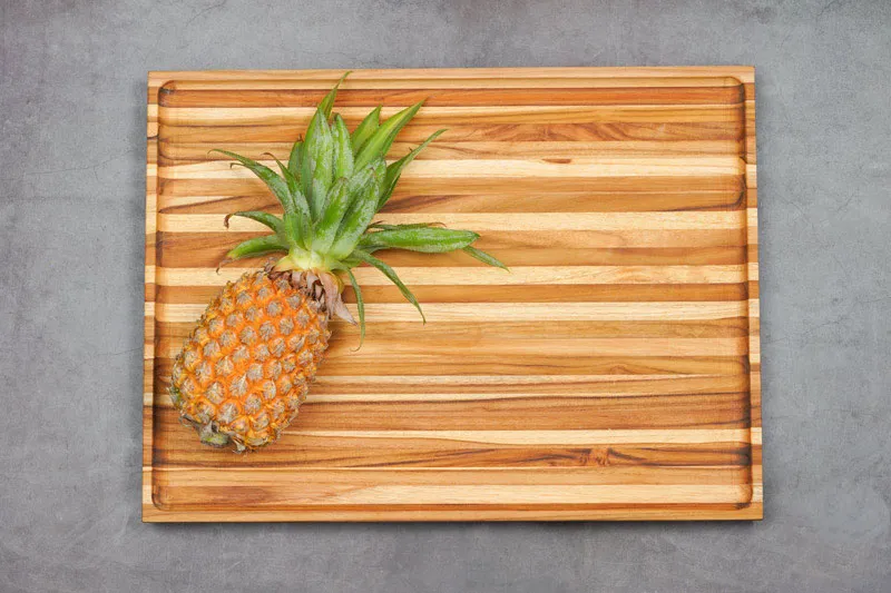 Đặc biệt, bên cạnh chứa lượng dầu tự nhiên cao, gỗ Teak còn chứa silica, giúp thớt có độ cứng tự nhiên, dẻo dai không phá hủy cạnh dao của bạn. Ưu điểm đặc biệt khác là gỗ Teak thường có khả năng chống sẹo hơn các loại gỗ khác, nhưng vẫn sẽ để lại sẹo khi sử dụng thường xuyên hoặc làm chặt băm mạnh.
