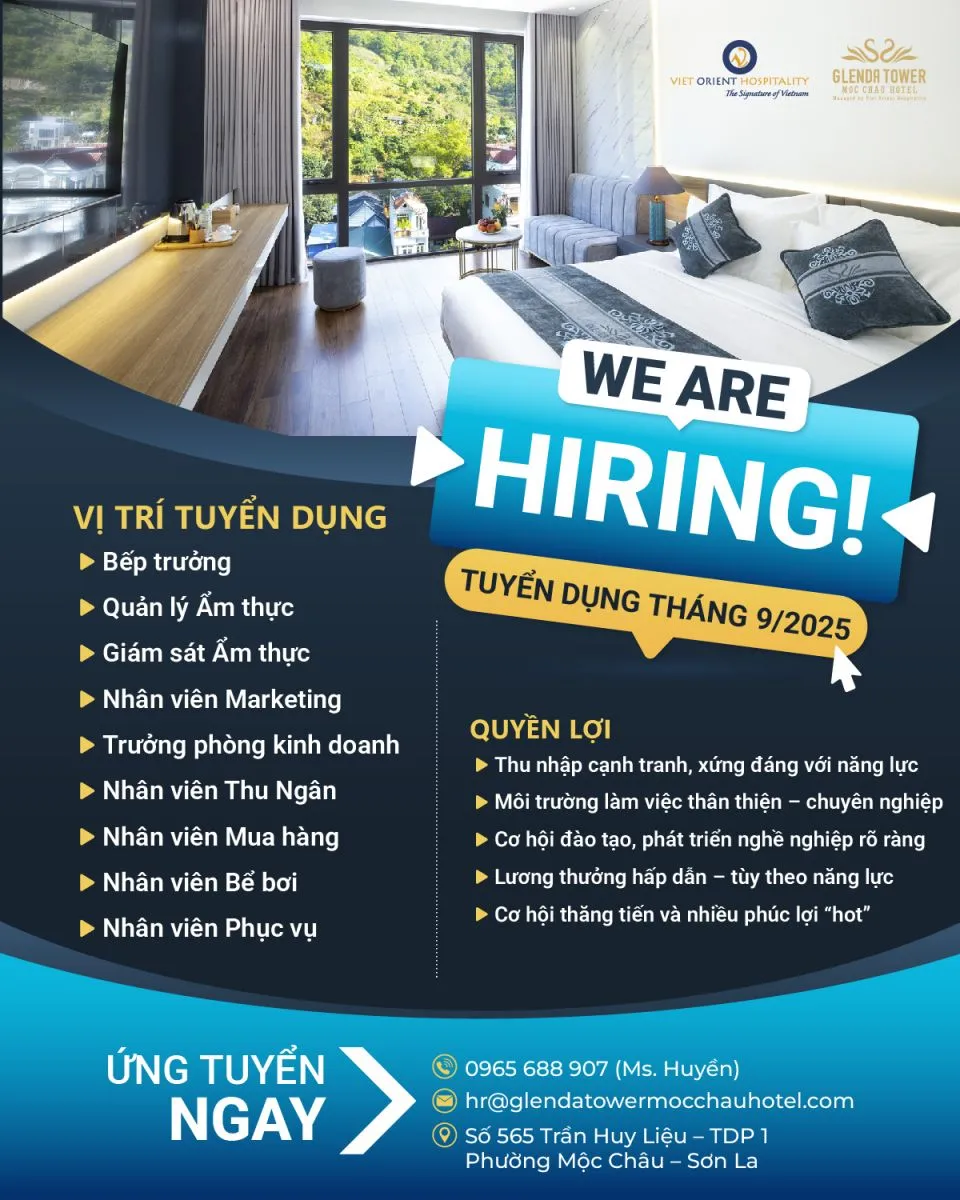 Recruitment September 2025 - Join the Glenda Tower Moc Chau Hotel team now!