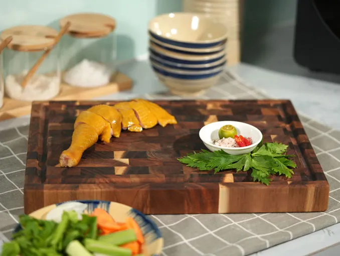 Thớt gỗ keo ghép đầu cây có thiết kế đẹp mắt